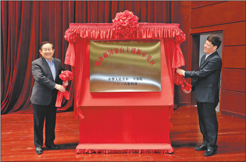 万钢、谢伏瞻共同为郑洛新国家自主创新示范区揭牌。科技部副部长阴和俊宣读了《国务院关于同意郑洛新国家高新区建设国家自主创新示范区的批复》。